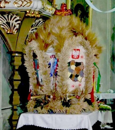 Z dojrzałych kłosów ręce kobiet uplotły żniwny wieniec.