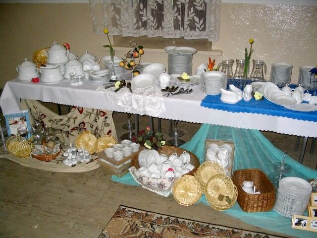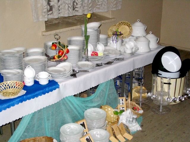 Panie z KGW rozszerzyły ofertę o nakrycia stołów, wazony, komplety kawowe i inne drobiazgi, które urozmaicają zastawę stołową. Wszystkie naczynia są wykonane z porcelany firmy Chodzież, charakteryzują się dużą trwałością, gustownym wzornictwem i estetycznym wykonaniem (są w - I gatunku).