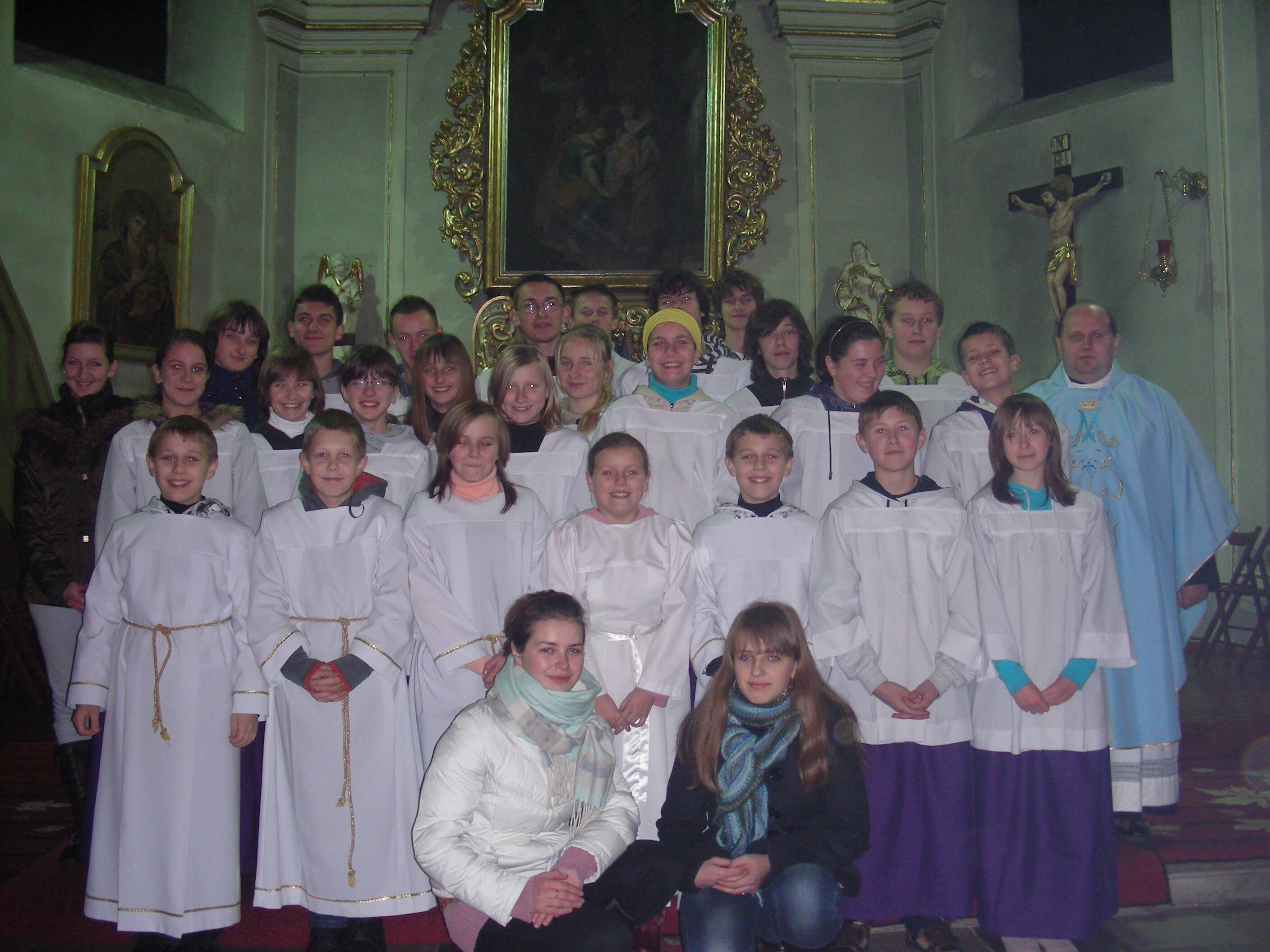 W dniu 08.12.2010r, tj w święto Niepokalanego Poczęcia NMP w naszym Kościele Parafialnym, ks proboszcz odprawił mszę św. dziękczynną w intencji Ministrantów i Marianek. Ks Waldemar podziękował licznie przybyłej służbie liturgicznej za dotychczasową służbę przy ołtarzu. Jednocześnie wyraził nadzieję, że to poświęcenie będzie miało pozytywny wpływ na ich dorosłe życie.