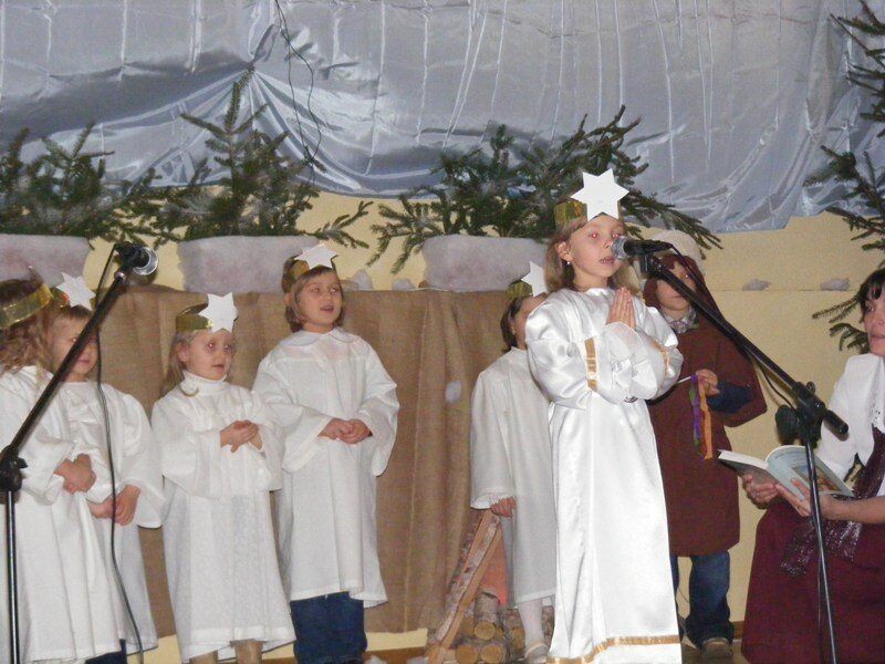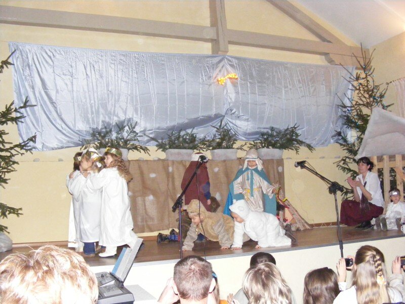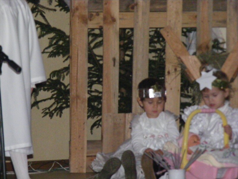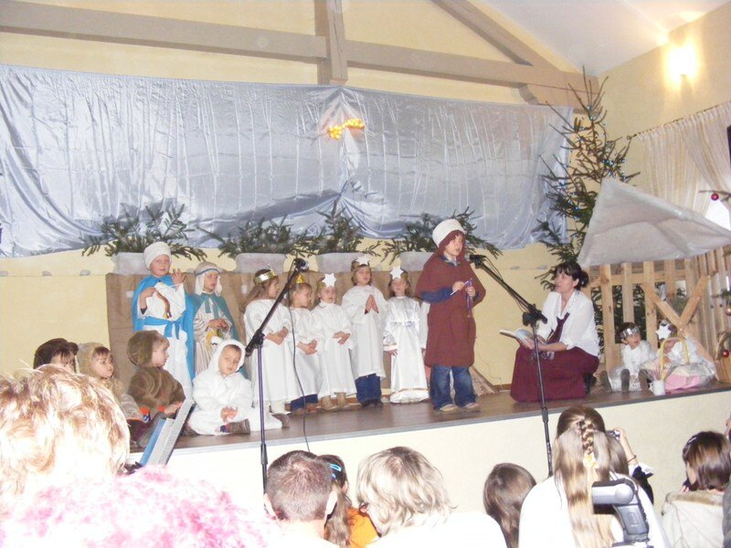 Ale jeden baranek przed występem zrzucił futerko i powiedział, że nie pójdzie, bo jest jeszcze za mały. Na jego miejsce znalazł się inny baranek, który chętnie pomaszerował z innymi do małego Jezuska, którego w kołysce usypiała mała Różyczka. A kołysankę do snu zaśpiewała w tym roku Dominika. Atmosfera spotkania była bardzo miła, a dzieci na scenie czuły się bardzo swobodnie.