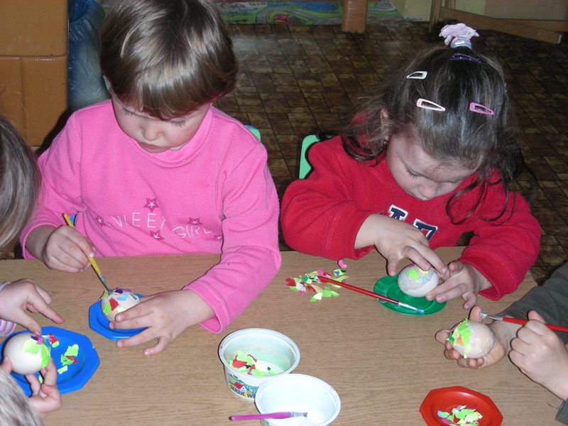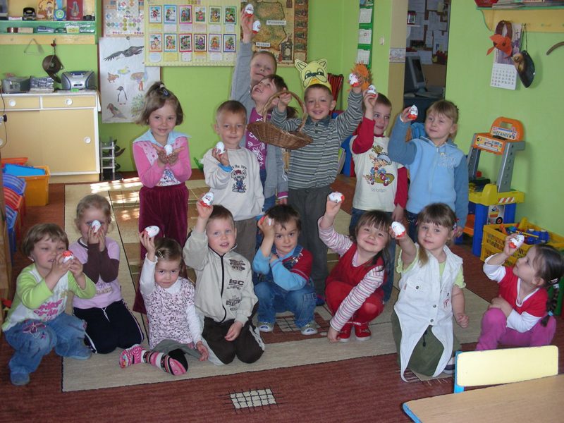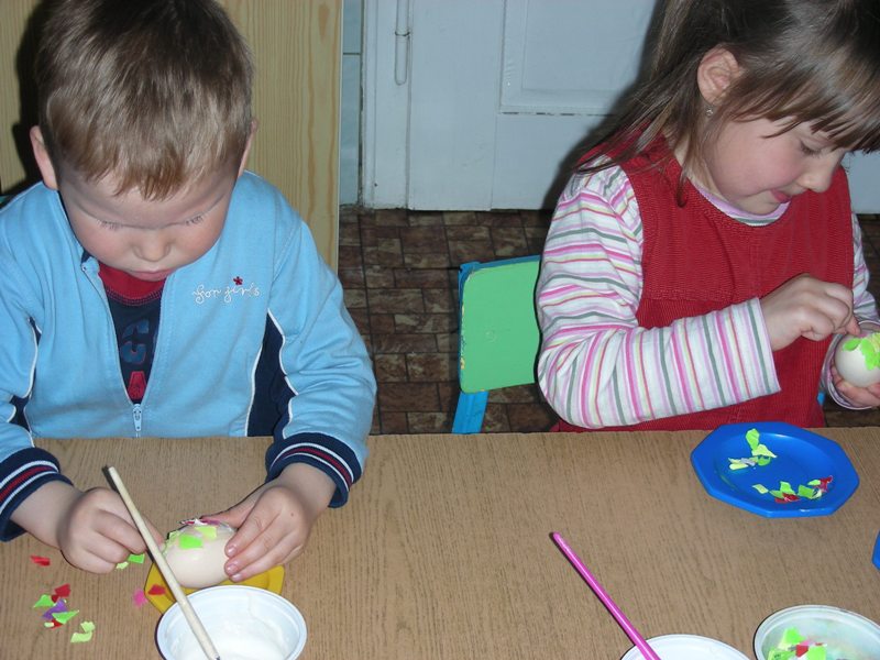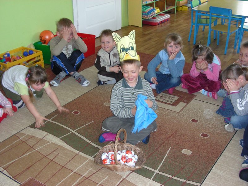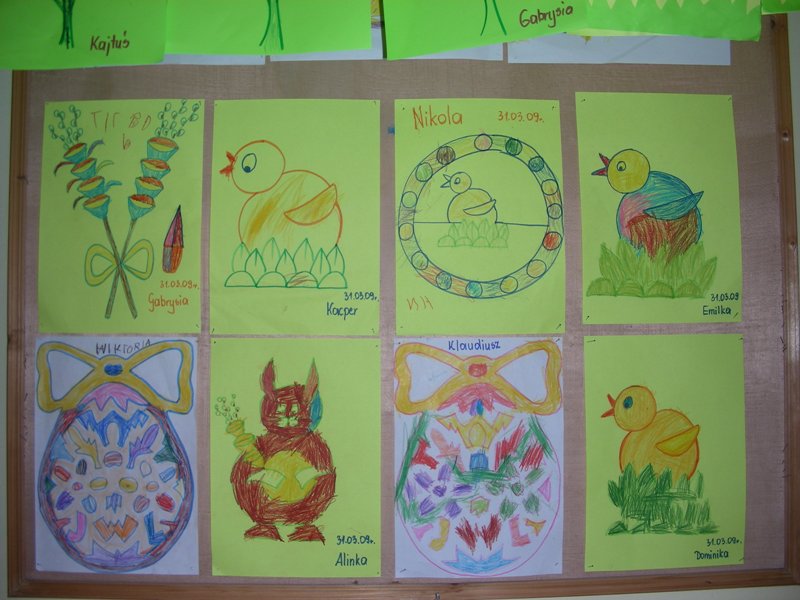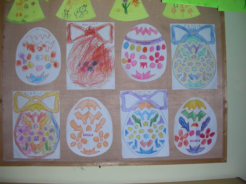 Dzieciaki w przedszkolu mogły dowiedzieć się o tych tradycjach z literatury, słuchając piosenek, wierszy, biorąc udział w zabawach ruchowych. Dzieci wydzierały, naklejały, malowały, kolorowały wszystko to, co związane było ze świętami wielkanocnymi.