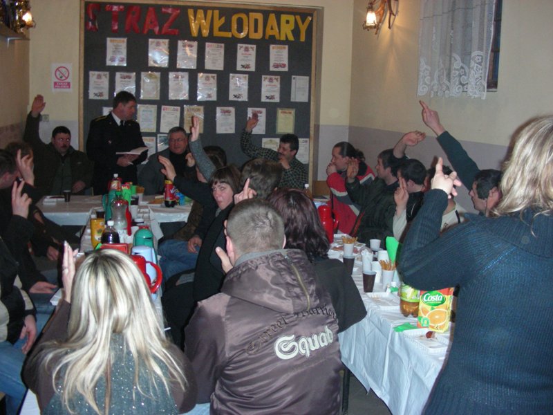 Zebranie poprowadził Piotr Bugaj. Po wysłuchaniu i przyjęciu sprawozdań merytorycznych i finansowych z działalności OSP we Włodarach za rok 2008, zebrani przystąpili do wyboru – uzupełnienia nowych władz Zarządu OSP we Włodarach.